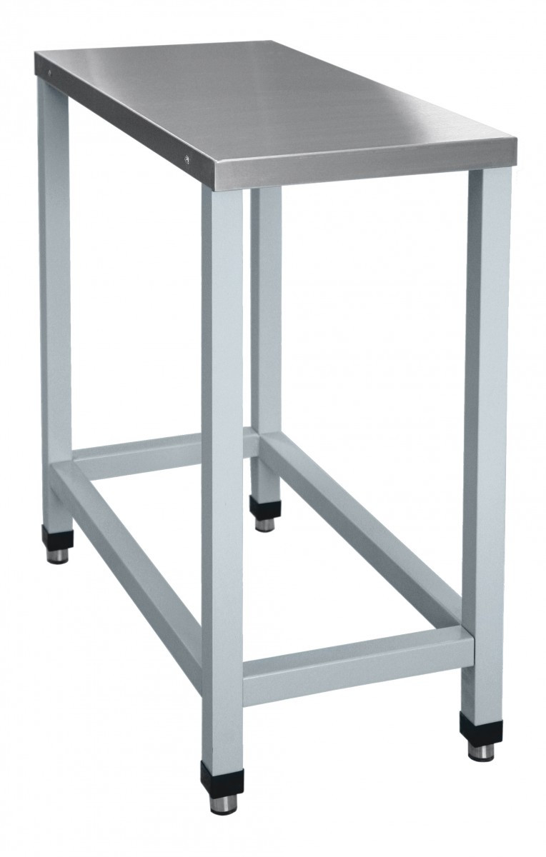 Конструкция разборная. Столешница изготовлена из нержавеющей стали. Регулируемые по высоте ножки.Ножки и основание окрашены порошковой краской.